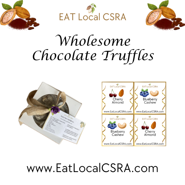 Chocolate truffles like no other, these are made with dark rich wholesome chocolate ganache. They are hand-crafted from ingredients that are organic and either locally sourced or fair-trade. Each ingredient has vitamins and minerals, antioxidants, and/or has properties that are conducive to a healthy gut microbiome. If you wish fruit and nut add-ins like those pictured, choose from: cherry, blueberry, cranberry, almond, cashew, and pecan. Marzipan is also an available filling. Note your preferences in your order. The perfect gift for your dark chocolate lover. Silky smooth, they melt in your mouth. You will want to treat yourself to a tin of these as well.